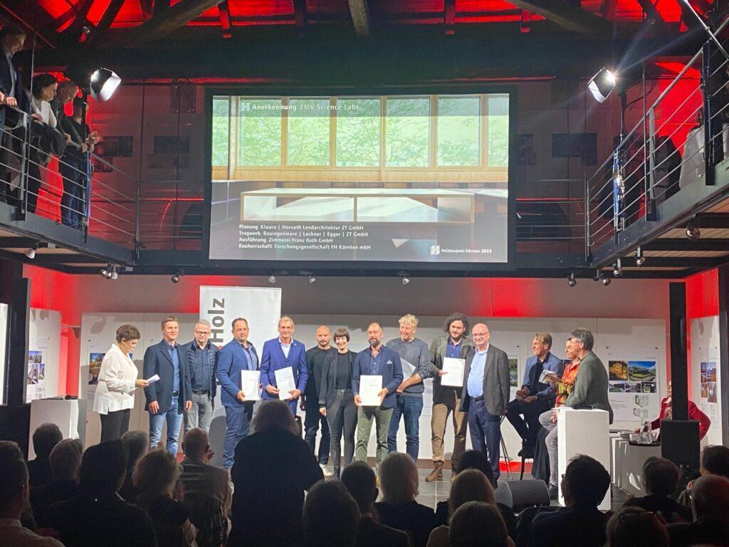 Unser neues EMV-Labor erhielt von proHolz Kärnten eine Anerkennung im Zuge des Holzbaupreises 2023. Der Preis wurde von unserem Geschäftsführer DI Herbert Kotschnig MBA entgegengenommen.