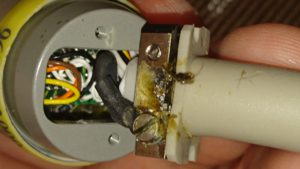 Hier ist eine klebrige Masse (ich vermute das Öl bzw. Gel aus dem Inneren des Sonden Kopfes) anhaftend. Diese Verunreinigung lässt sich nach Abstecken des Kabels dann einfach mit Alkohol oder Platinen Reiniger entfernen und reinigen.
