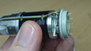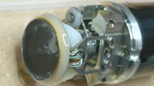 In diesem Fall war keinerlei Beschädigung zu erkennen. Alle Koaxial Leitungen zum Kristall sind in Ordnung. Alle Anschlusspins sind ebenso ok. Der Aktuator funktioniert. Der Bowdenzug ist ebenso ok. Also kann es nur mehr das „Öl?“ sein. Also habe ich die Einheit wieder zusammengebaut.