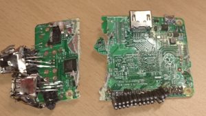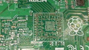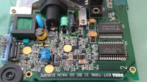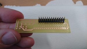 Die unterschiedlichen Bohrlöcher für die THT Bauteile macht auch hier die Maschine.