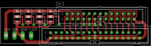 Also wie üblich die Schaltung auf Basis Asier Marzos Projektangaben gezeichnet und ein wenig optimiert und in den Schaltplan-Editor eingegeben, ein Layout geroutet und die Belichtungsfolien erstellt.