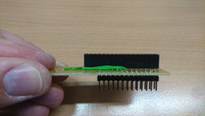 Die fertige Platine mit aufgestecktem Arduino Nano