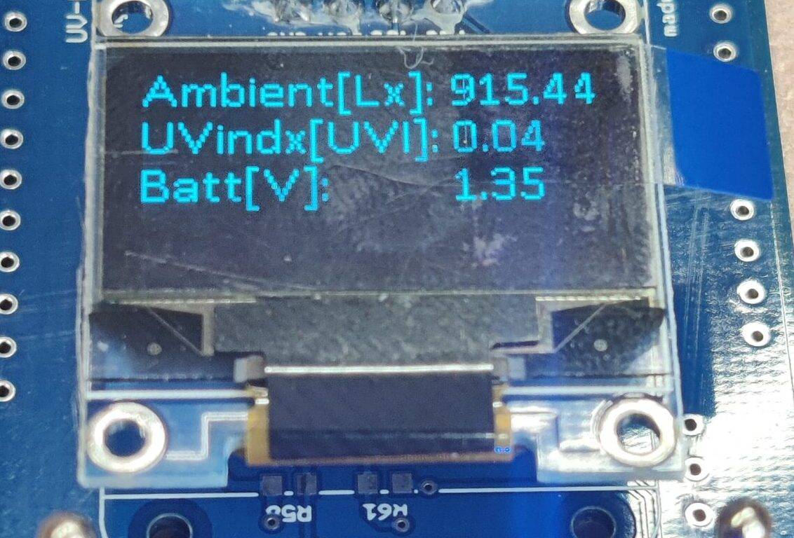 I’m happy to post the entire code here if needed. However, it is not rocket science, but simple and certainly not optimized lines of code writing 🙂 In the current code (firmware) version 1.3d there is a small selection menu that makes it possible to set the log interval of the SD card recording and of course the start or stop recording. It is logged in a text file. The data recorded are UV index, ambient brightness and battery voltage.