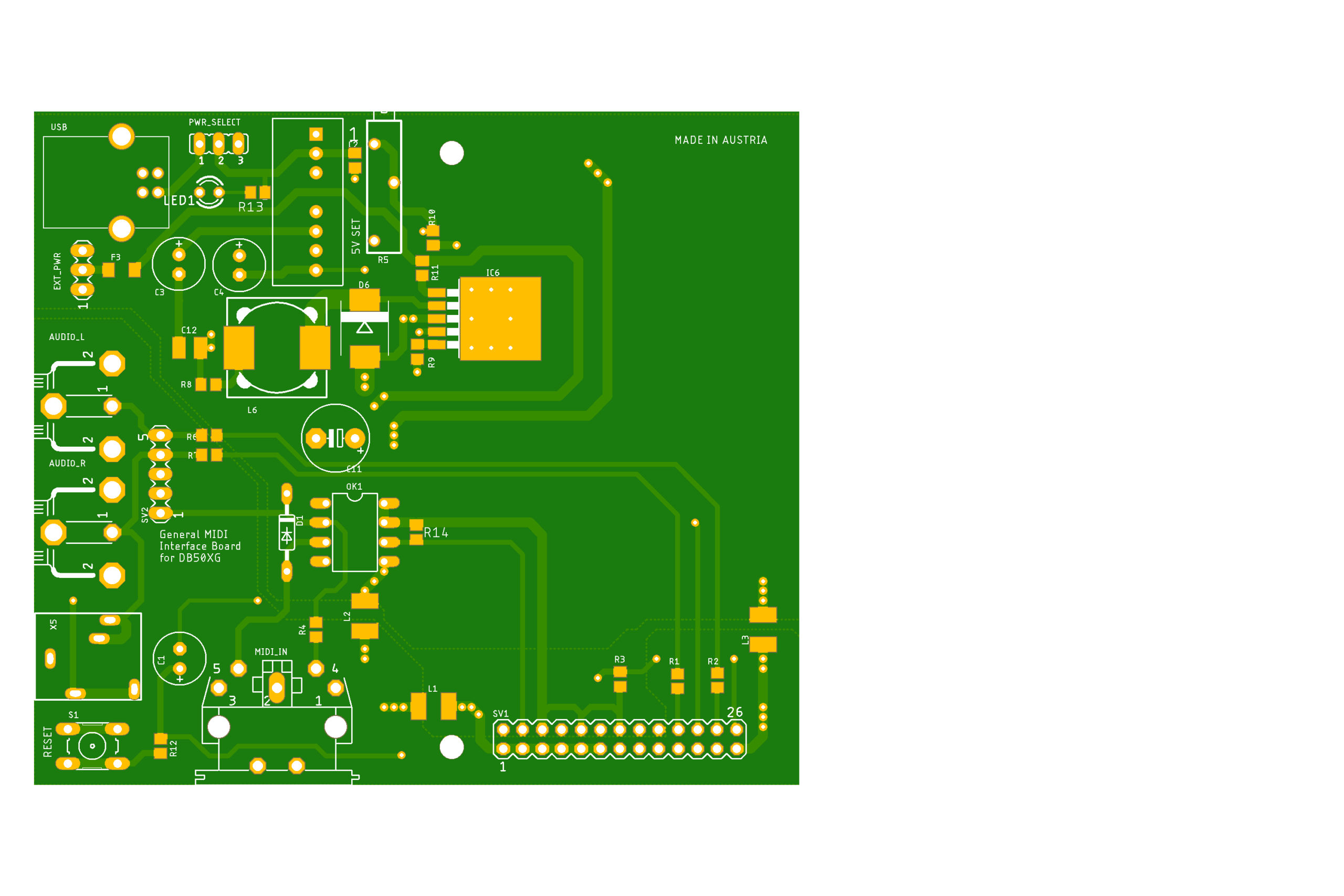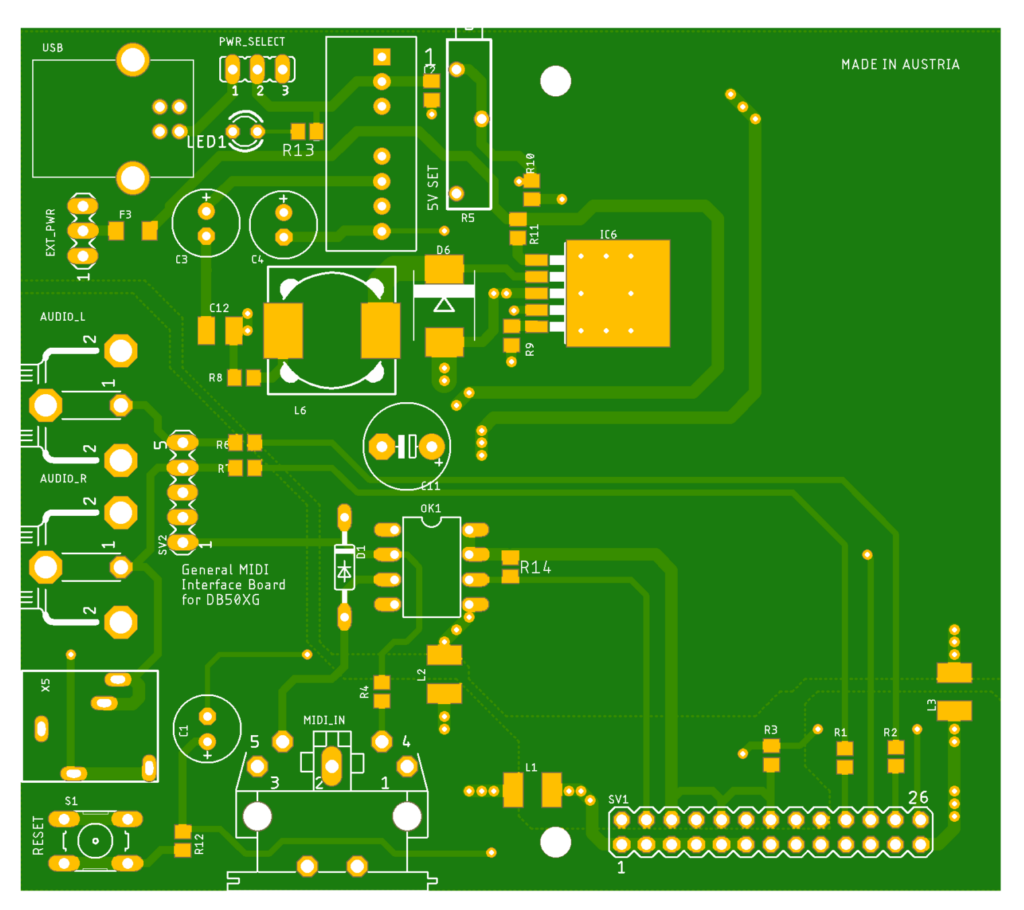 Der ganze Aufbau war damals eher sehr spartanisch gestaltet. Die Stromversorgung musste über ein, oder mehrere externe Netzteile hergestellt werden. Es gab keine galvanische Signaltrennung mittels Optokoppler. Da musste ich mich auf den ordentlichen Aufbau des Midi-IO-Controller verlassen, den ich an den Amiga angeschlossen hatte. So durfte das natürlich nicht bleiben. Und das schöne DB50XG Board nicht mehr zu verwenden, oder dem Elektronikschrott zuzuführen, bringe ich nicht über´s Herz. Der Plan der daraus entstand, war, ein neues Interfaceboard zu entwickeln – oder basteln, das möglichst universell einsetzbar werden sollte.