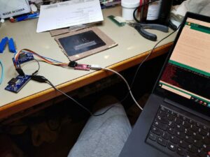 This is why the tool package contains a small basic program “wificonf”. It allows to set up the SSID and PASS commands using “DATA” lines of ASCII code. The example configures the SSID ‘test’ with the password ‘PaSs_’, change it accordingly. Furthermore, it allows to set up the target IP/port and own port for communication using the “chatty” program, also found on the tool disk. You may also permanently store the setup in the modem NVM, so it will correctly start up when you switch on your computer (or connect the USB module to your PC).
